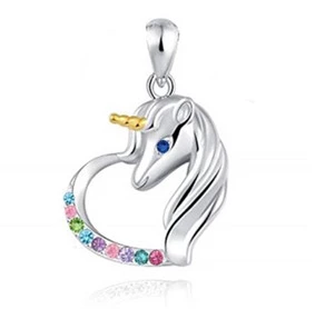 Stříbrný přívěšek ve tvaru jednorožce zdobeného různobarevnými zirkony