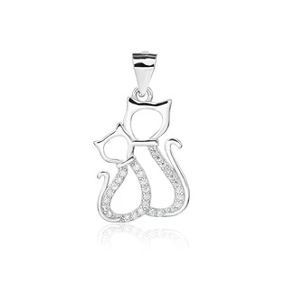 Stříbrný přívěsek v podobě sedících kočiček dekorovaných zirkony čiré barvy
