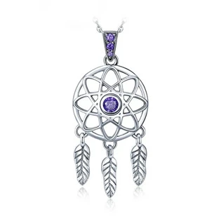 Stříbrný přívěšek lapač snů se zirkony fialové barvy