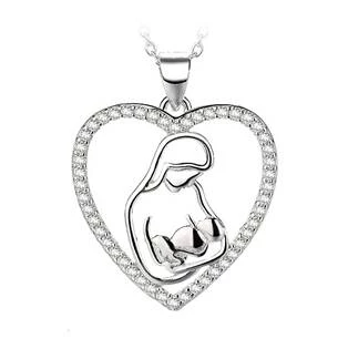 Stříbrný přívěšek dekorovaný zirkony a symbolem matka a dítě