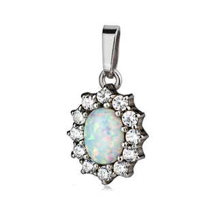Stříbrný přívěšek zdobený bílým syntetickým opálem a zirkony