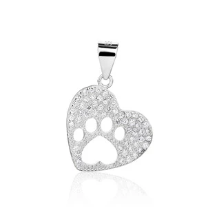 Stříbrný přívěsek ve tvaru srdíčka dekorovaného zirkony a symbolem tlapky
