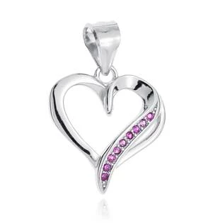 Stříbrný přívěšek srdčko dekorované tmavě růžovými zirkony