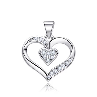 Stříbrný přívěšek ve tvaru dvou srdíček zdbených světle růžovými zirkony