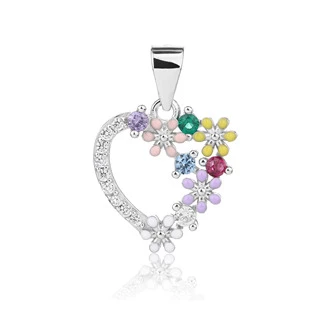 Stříbrný přívěsek ve tvaru srdíčka, které je zdobené kytičkami a kubickými zirkony.