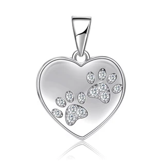 Stříbrný přívěsek ve tvaru srdíčka. Přívěsek je dekorován motivem psích tlapiček