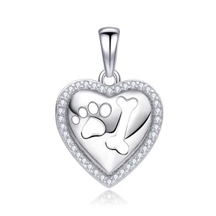 Stříbrný přívěšek ve tvaru srdíčka zdobeného sybolem psí tlapky a kostičky
