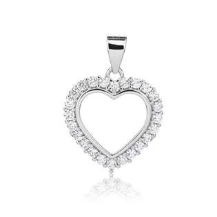 Stříbrný přívěsek ve tvaru srdíčka, které je o svém obvodu zdobené kubickými zirkony čiré barvy.
