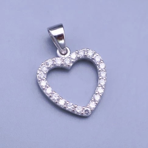 Nádherný dámský stříbrný přívěsek na řetízek - srdíčko. Přívěsek je po celém svém obvodu zdoben zářivými čirými kamínky. Srdíčko je střední až menší velikosti a skvěle se hodí pro každodenní nošení. Díky zářivým kamínkům vypadá velice elegantně a luxusně. Šperky se vzorem srdíčka jsou nadčasové a jako dárek zaručeně potěší ženu v každém věku.