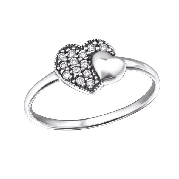 Dvojité Srdce - Stříbro 925 Prsten > varianta 57