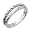 Dvojitý stříbrný prsten se zajímavým krouceným dekorem. Prsten je vyroben z jakostního stříbra 925 a povrchově upraven rhodiací.