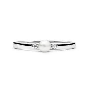 Prsten zdobí jedna perlička velikosoti 4 až 4,5 mm a 2ma kubickými zirkony čiré barvy.