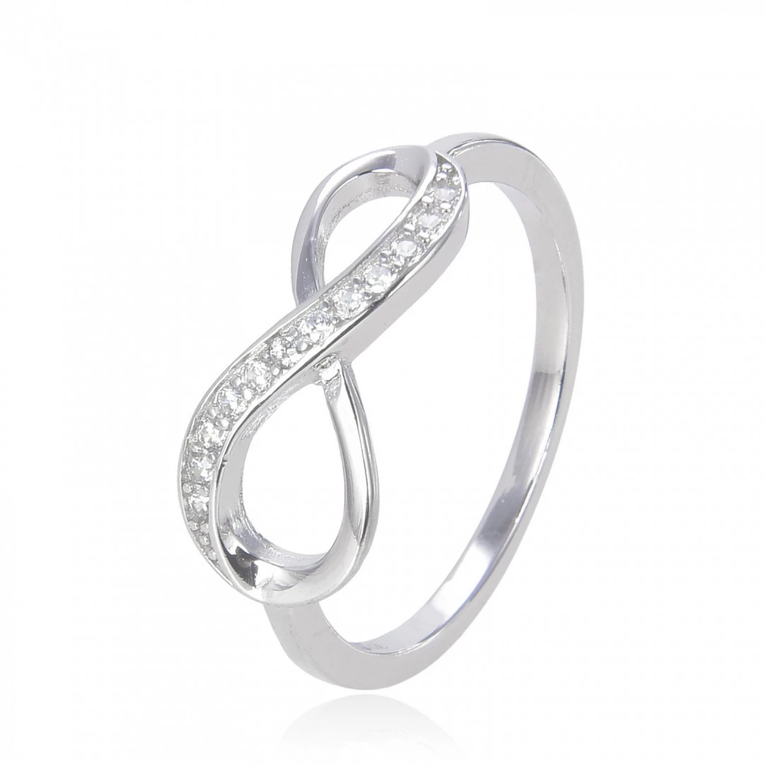 Prsten ze stříbra s motivem nakonečna zdobené bílými kamínky