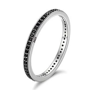 Stříbrný prsten dekorovaný černými zirkony Prsten je vyroben ze stříbra ryzosti 925-1000 s povrchovou úpravou rhodium Rhodium patří mezi drahé kovy, patřící do skupiny platinových a chrání stříbro před černáním, zvyšuje lesk šperků Parametry materiál stříbro (Ag 925-1000) povrchová úprava rhodium velikost prstenu 52 šíře prstenu 2 mm druh kamene zirkon hmotnost 1,40 g