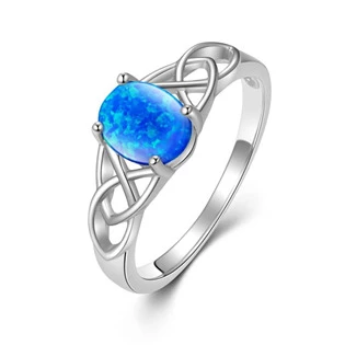 Stříbrný prsten zdobený syntetickým opálem modré barvy