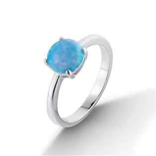 Stříbrný prsten zdobený syntetickým opálem světle modré barvy
