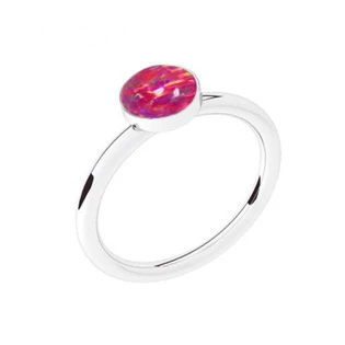 Stříbrný prsten zdobený kulatým syntetickým opálem tmavě růžové barvy