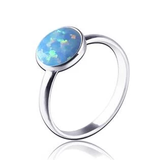 Stříbrný prsten zdobený kulatým syntetickým opálem modré barvy