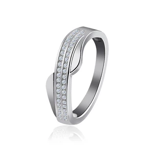 Stříbrný prsten po svém obvodu zdobený zirkony čiré barvy