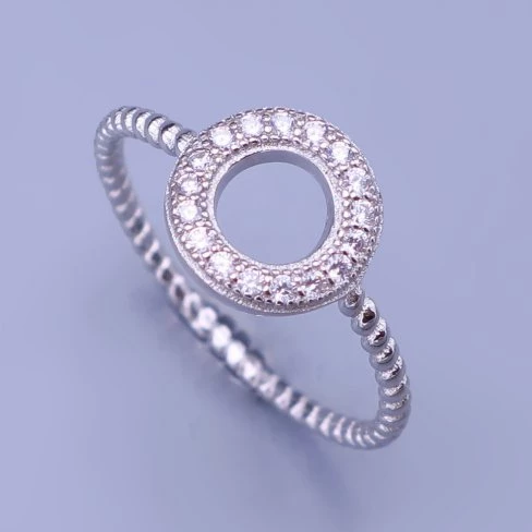 Jemný stříbrný prstýnek, je zdoben kolečkem o velikosti 10mm, který je po obvodu zdobený čirými zirkony.