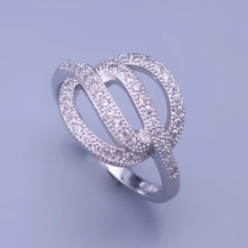 Krásný stříbrný prstýnek je zdobený čirými zirkony,