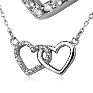 Stříbrný řetízek zdobený dvěma srdíčky zdobenými zirkony Řetízek je vyroben ze stříbra s jakostním označením 925-1000 a povrchově upraven rhodiováním materiál stříbro (Ag 925-1000) povrchová úprava rhodium délka řetízku 45 cm šíře řetízku 1 mm hmotnost 2,35g
