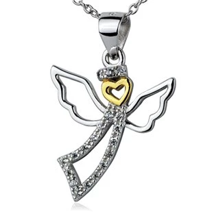 Stříbrný řetízek zdobený přívěškem ve tvaru andílka osázeného zirkony čiré barvy Náhrdelník je vyroben ze stříbra s jakostním označením 925-1000 a povrchově upraven rhodiováním materiál stříbro (Ag 925-1000) povrchová úprava rhodium, žluté zlato délka řetízku 45 cm rozměr přívěšku 16 x 21 mm šíře řetízku 1 mm celková výška přívěšku 26 mm hmotnost 2,48 g