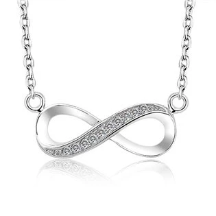 Stříbrný řetízek zdobený s přívěškem ve tvaru nekonečna se zirkony Řetízek i přívěšek jsou vyrobeny ze stříbra ryzosti 925-1000 Rhodium patří mezi drahé kovy, patřící do skupiny platinových a chrání stříbro před černáním, zvyšuje lesk náhrdelníku. materiál stříbro (Ag 925-1000) povrchová úprava rhodium délka řetízku 45 cm rozměr přívěšku 7 x 18 mm šíře řetízku 1 mm hmotnost 3,05 g