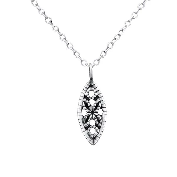 Materiál Šperkovní stříbro 925 Dodatečné pokovování Rýzí stříbro Oxidované + Antikorózní úprava Stříbro hmotnost 1.55 g Velikost 6 mm x 14 mm Řetízek Délka řetízku, max. : 45 cm, tloušťka řetízku : 1 mm K tomuto náhrdelníku si můžete pořídit i náušnice