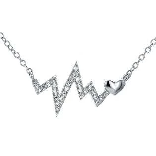 Stříbrný náhrdelník se zavěšeným přívěškem ve tvaru symbolu srdečního tepu - heart beat Náhrdelník je vyroben ze stříbra s jakostním označením 925-1000 s povrchovou úpravou rhodium Rhodium patří mezi drahé kovy, patřící do skupiny platinových, chrání stříbro před černáním a zvyšuje lesk sříbrných šperků. Náhrdelník je dodáván v papírové dárkové krabičce Parametry materiál stříbro (Ag 925-1000) povrchová úprava rhodium druh kamene zirkon rozměr přívěšku 22 x 12 mm délka náhrdelníku 42 cm + 3 cm hmotnost 2,11
