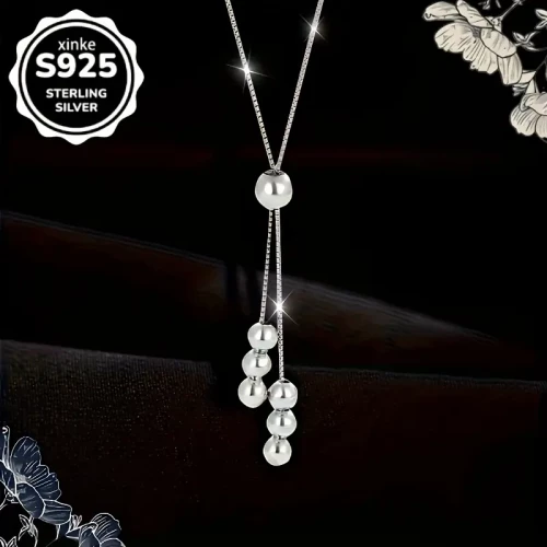 Elegantní vrstvený řetízek s velkým korálkem a šesti malými korálky.
