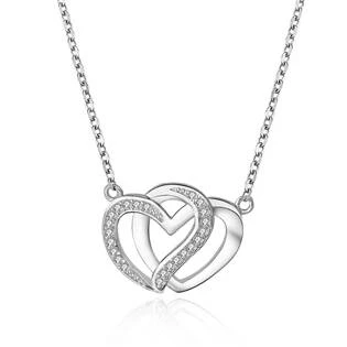 Stříbrný náhrdelník s přívěškem ve tvaru dvou propletených srdíček dekorovaných zirkony čiré barvy