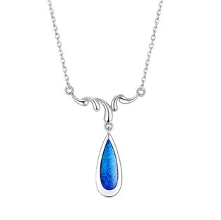 Dámský stříbrný náhrdelník dekorovaný modrým syntetickým opálem