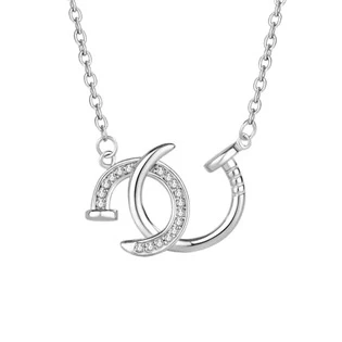 Stříbrný náhrdelník s přívěškem ve tvaru dvou propletených hřebíků dekorovaných zirkony