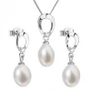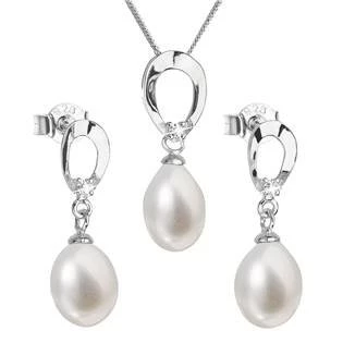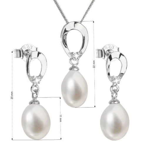 Elegantní stříbrná souprava šperků a řetízku zdobených kultivovanými sladkovodními perlami bílé barvy Souprava je vyrobena ze stříbra ryzosti 925-1000 Šperky jsou povrchově upraveny rhodiováním. Tato povrchová úprava brání černání náušnic a zamezuje alergickým reakcím. Souprava je dodávána v papírové dárkové krabičce a dárkové taštičce spolu s certifikátem pravosri použitých perel Parametry materiál stříbro (Ag 925-1000) povrchová úprava rhodium druh kamene zirkon typ uzávěru puzeta druh perly kultivovaná říční hmotnost 5,15 g Velikost náušnic 23x11mm Velikost přívěsku 22mm