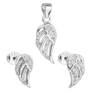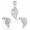 Překrásná stříbrná souprava náušnic a přívěšku ve tvaru křidélek zdobených kubickými zirkony čiré barvy Souprava je vyrobena ze stříbra ryzosti 925-1000 Šperky jsou povrchově upraveny rhodiováním. Tato povrchová úprava brání černání náušnic a zamezuje alergickým reakcím. Souprava je dodávána v papírové dárkové krabičce Parametry materiál stříbro (Ag 925-1000) povrchová úprava rhodium druh kamene zirkon typ uzávěru puzeta Rozměry náušnic 11x6mm Rozměry přívěsku 20x8mm