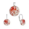 Stříbrné kulaté visací náušnice a přívěsek září mnoha krystaly Swarovski. Červená barva krystalů koresponduje s rhodiovaným stříbrem 925/1000, ze kterého jsou šperky vytvořeny. Rhodium udrží šperk ve skvělé formě - bez zažloutnutí i zčernání. Zároveň chrání soupravu proti poškrábání. Šperky neobsahují nikl, je tedy vhodným dárkem i pro alergiky.