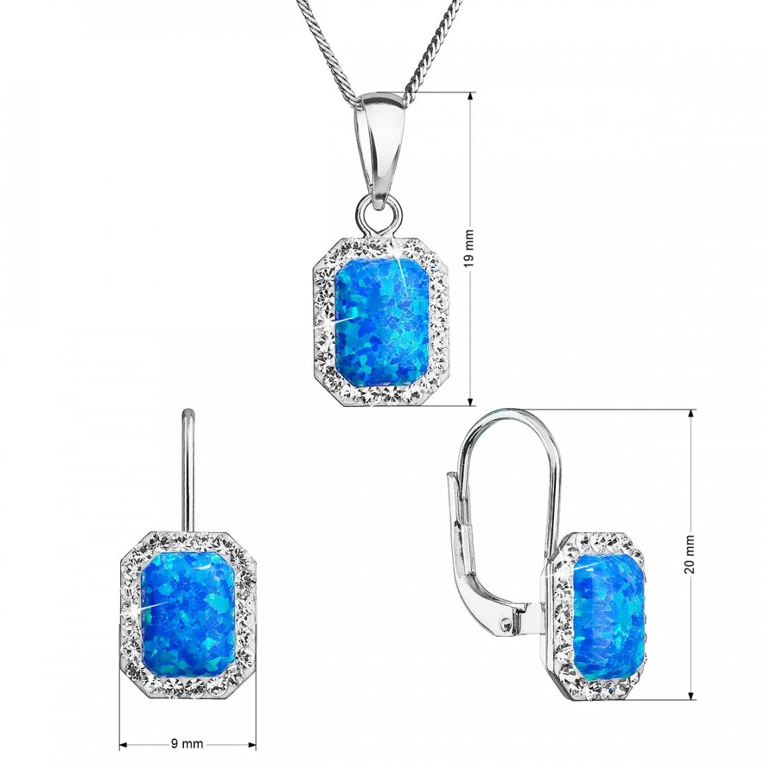 Parametry sady šperků se syntetickým opálem a krystaly Preciosa náušnice a přívěšek modré 39175.1