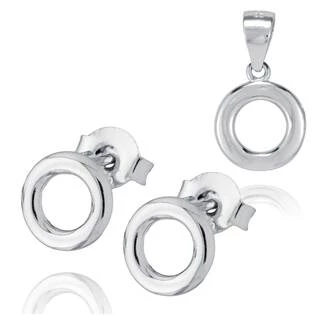 Stříbrná souprava šperků se skládá z náušnic a přívěšku ve tvaru jednoduchých koleček