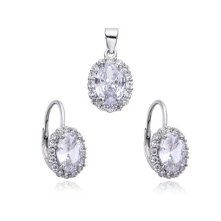 Stříbrná souprava šperků se skládá z náušnic a přívěšku dekorovaných oválnými zirkony