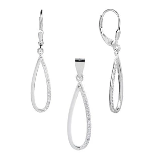 Stříbrná souprava šperků se skládá z náušnic a přívěšku dekorovaných zirkony