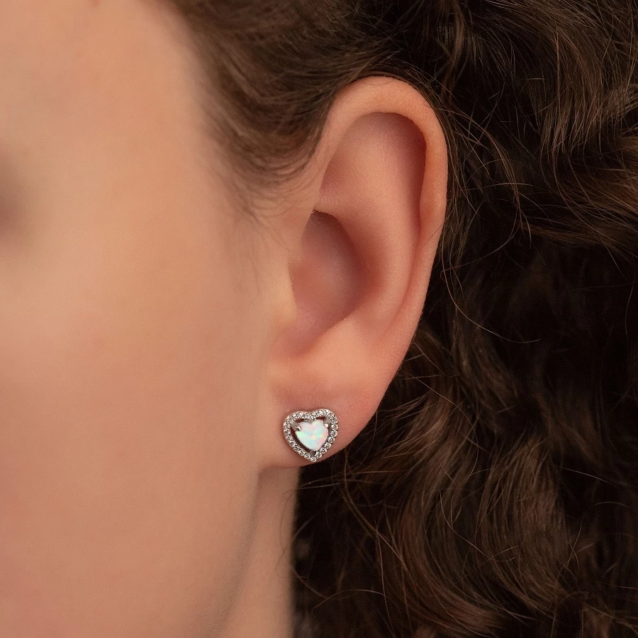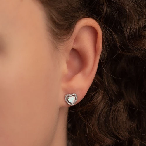 Stříbrná souprava šperků se skládá z náušnic a náhrdelníku zdobeného syntetickými opály