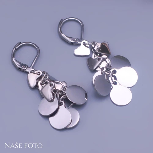 Orientální visací náušnice jsou složeny z koleček a srdíček.