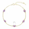 Decentní řetízek působí elegantně, ideální pro každodenní nošení i jako doplněk k večerním outfitům. Náramek je vyroben ze stříbra ryzosti 925/1000 s pozlaceným povrchem. Po obvodu náramku jsou rozesety fialové ametysty. Délku náramku lze snadno upravit díky prodlužovacímu řetízku.