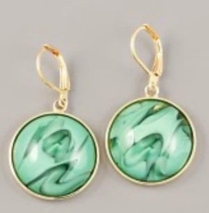 Zlacené náušnice zdobené MUGLE KULATÁ zelený s melírem - 20mm Klasické zapínání na klapku