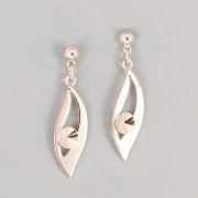 Náušnice - LÍSTEK zdobí Rivoli 6mm - růžové zlato