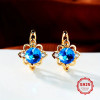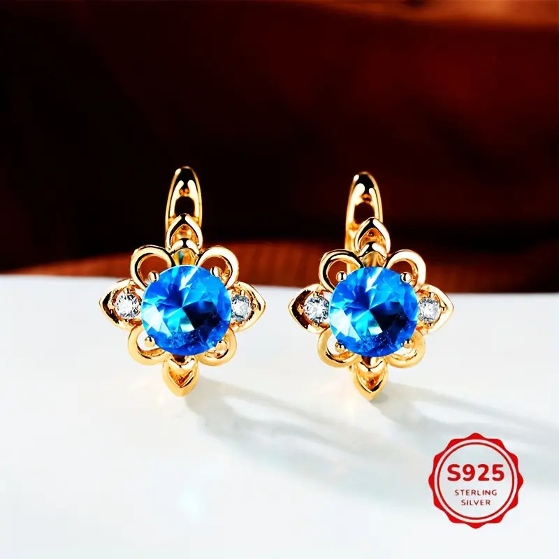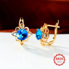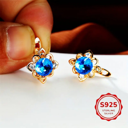 Náušnice zdobí třpytivý modrý kubický zirkon po straně dva maličké čiré zirkonky