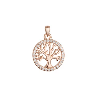 Stříbrný přívěsek s motivem strom života. Přívěsek má zlacenou povrchovou úpravu v barvě růžového zlata.