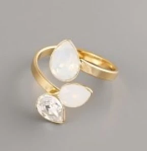 Prsten TRIO zdobí SLZIČKY SWAROVSKI 8mm - 2ks a také SLZIČKA SWAROVSKI 10mm. Prsten je roztahovací, jeho velikost si můžete přizpůsobit, jen s ním při tom přizpůsobování zacházejte jemně. Na fotografii jsou použité barvy Aquamarine, White Opal a Crystal.