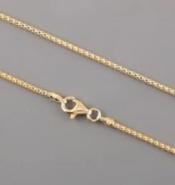 řetízek kulatý, strukturou jakoby upletený, o síle 1,6mm, délce 55cm, pozlacený 24karátovým zlatem. Krásný řetízek bez oček.